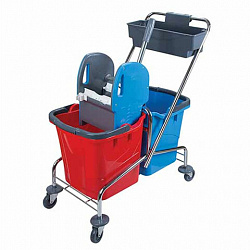 Тележка уборочная, 2 съемных ведра по 25 л, механический отжим, корзина, BRABIX, Турция, 607903