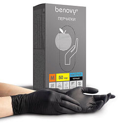 Перчатки нитриловые смотровые 50 пар (100 шт.) размер S (малый) черные BENOVY MultiColor, ЧЗ, К
