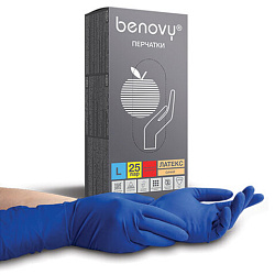Перчатки латексные смотровые 25 пар (50 штук), прочные, размер 8-9, L (большой), BENOVY High Risk