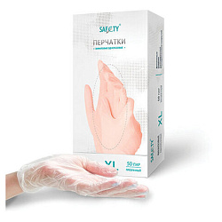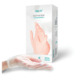 Перчатки виниловые смотровые 50 пар (100 штук), размер 9-10, XL (очень большой), прозрачные SAF&TY