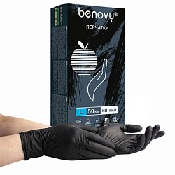 Перчатки нитриловые смотровые 50 пар (100 шт.) размер S (малый) черные BENOVY MultiColor, ЧЗ, К