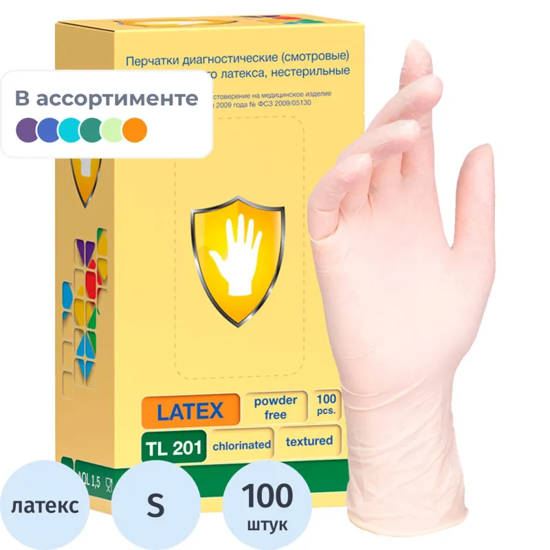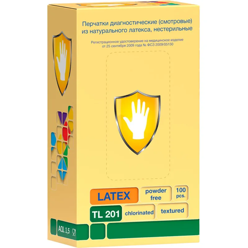 Перчатки медицинские смотровые из натурального латекса, неопудренные, хлорированные, гипоаллергенные, нестерильные, поверхность текстурированная, цвет жёлтый, форма плоская, манжета с валиком. Предназначены для выполнения работ в стоматологии и амбулаторных отделениях: осмотр, забор крови, лабораторные исследования и малые операции, стоматологическое лечение. Возможно использование в пищевой промышленности.Изделие сделано из латекса натурального каучука, который может вызвать аллергическую реакцию.
