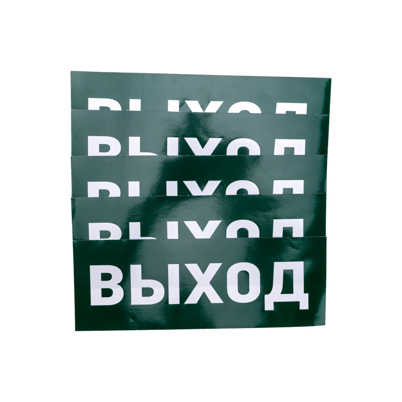 Наклейка для прозрачного аварийного светильника Арт 74-0001, размером 120*320мм. Наклейка выполнена из литой цветной пленки, которая имеет долгий срок службы и защиту от выцветания.