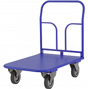 Тележка ТПСР имеет универсальную площадку для установки колесных опор, как европейских, так и азиатских производителей. В комплекте полный набор метизов для установки колес. Настил выполнен из металлического листа, установлен на металлическом каркасе, изготовленном из трубы круглого сечения 30 мм. Полимерная порошковая окраска позволяет работать на открытом воздухе при атмосферных осадках. Главным преимуществом данной платформенной тележки является ее способность к трансформации ручки. Система складывания ручки - зацеп.