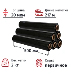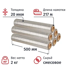 Стрейч-пленка для ручной упаковки, 50 см х 220 м, 20 мкм, вес 2 кг, СМЕСОВОЕ СЫРЬЕ, растяжение 220%