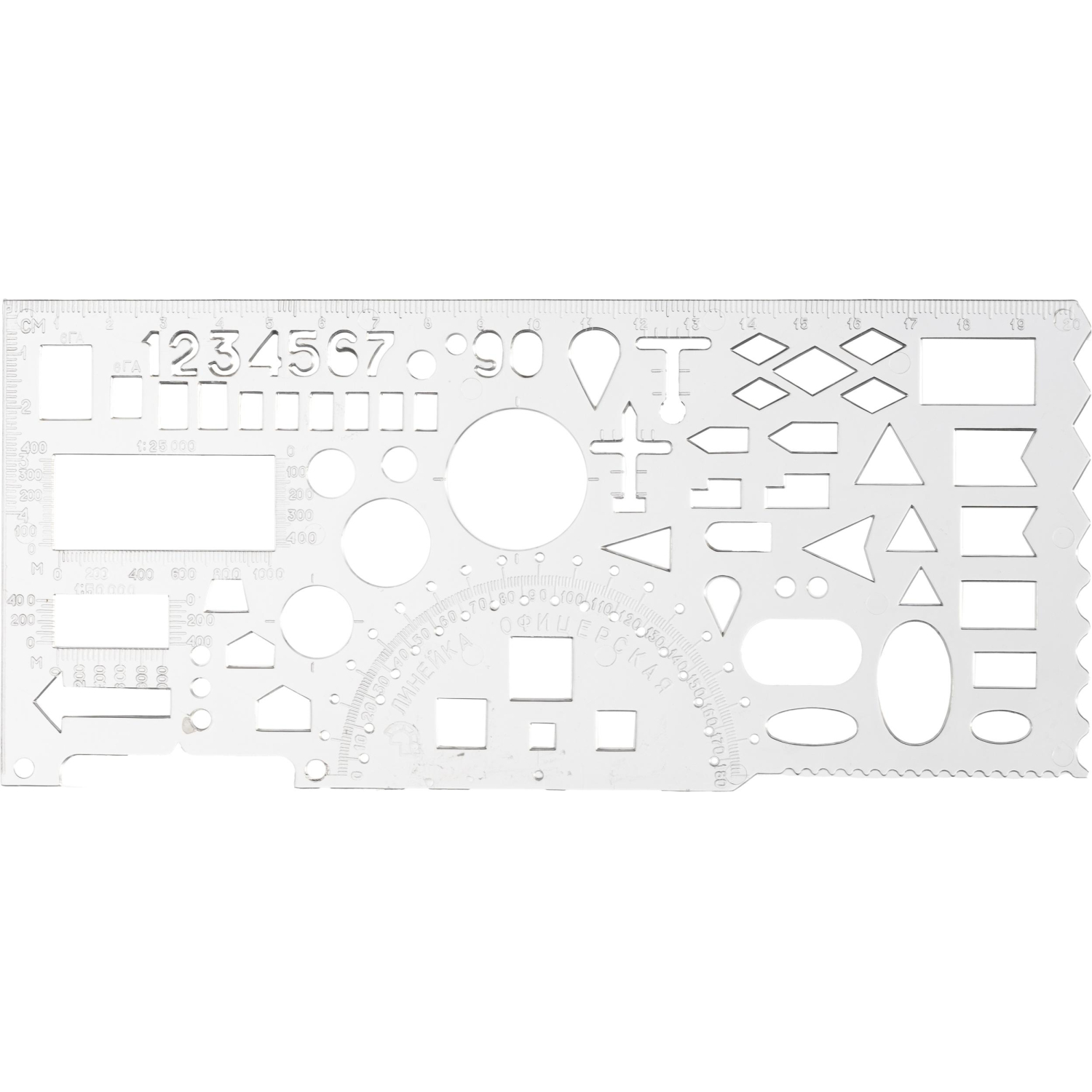 Снабжена транспортиром с двусторонней миллиметровой шкалой делений.