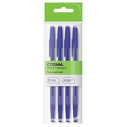 Набор шариковых ручек СТАММ "111" 4шт., 04цв., 1,0мм, тонированный корпус, пакет с европодвесом