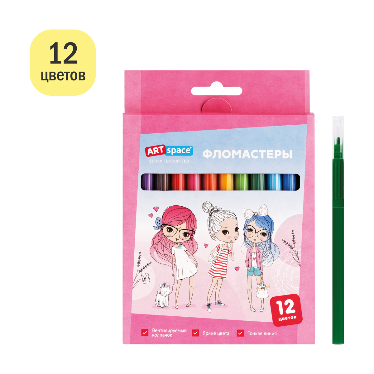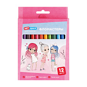 Фломастеры ArtSpace "Модницы", 12цв., смываемые, картон, европодвес