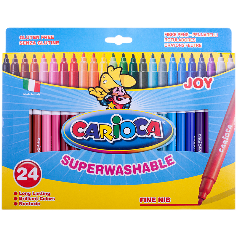 Фломастеры Carioca "Joy", 24цв., смываемые, картон, европодвес