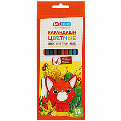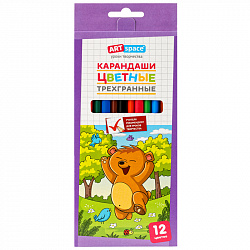 Карандаши цветные ArtSpace "Лесные жители", 12цв., трехгран., заточен., картон. уп., европодвес