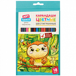 Карандаши цветные ArtSpace "Лесные жители", 18цв., трехгран., заточен., картон. уп., европодвес