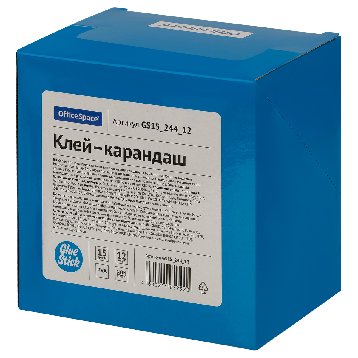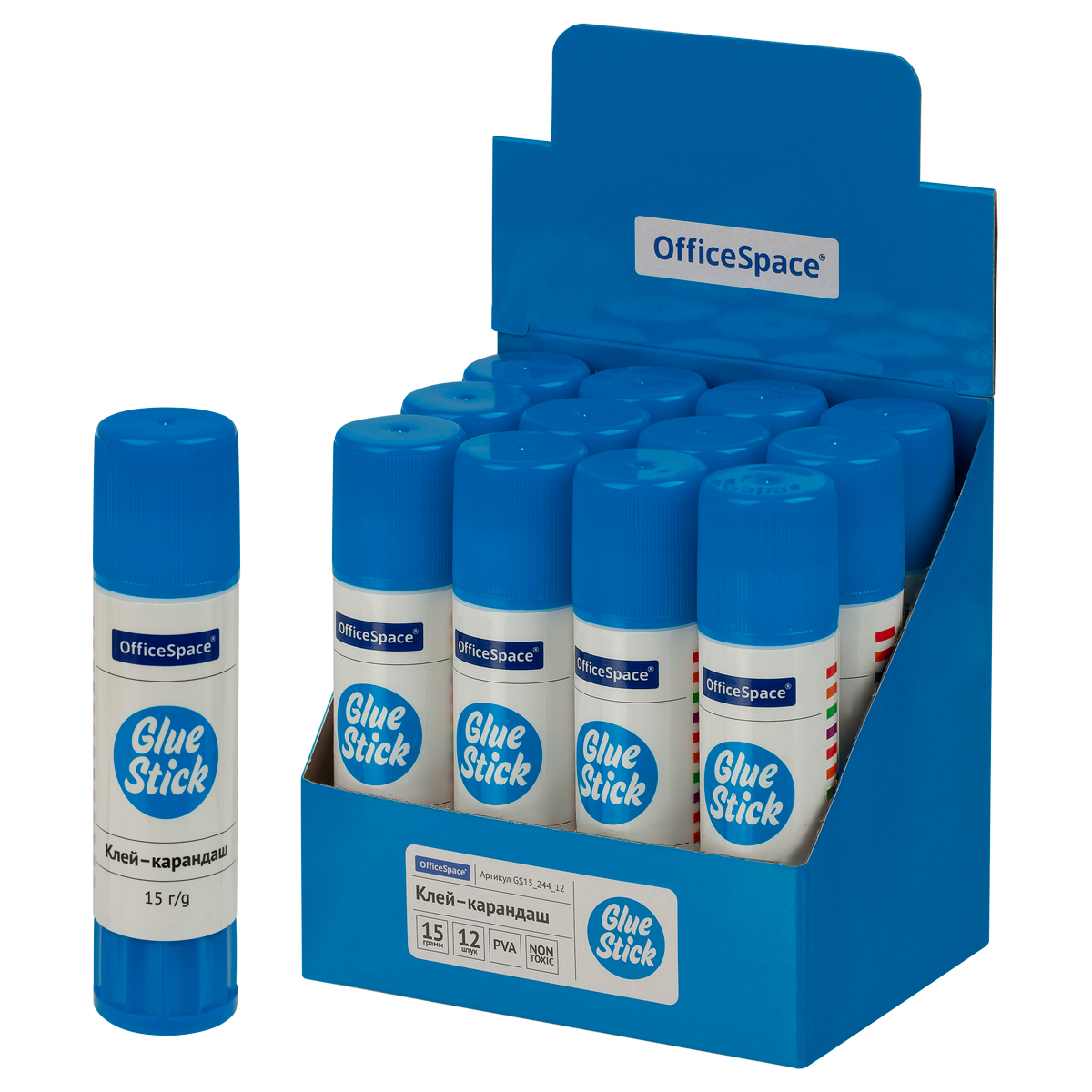 Клей-карандаш OfficeSpace, 15г, дисплей, ПВА_1