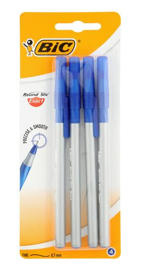 Ручка шариковая BIC Round Stic Exact синяя 4 шт, 20 гр