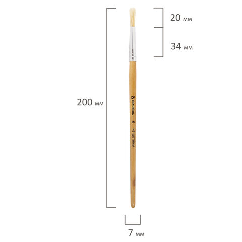 Кисть BRAUBERG, щетина, круглая, № 5, 200196