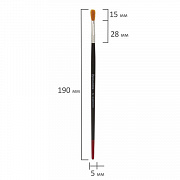 Кисть из синтетического ворса эластичная и крепкая, не распадается, хорошо держит форму, долговечна и надежна. Кисть № 5 позволит комфортно прорисовывать мелкие детали. Деревянную крашеную укороченную рукоятку кисти удобно держать в руке.