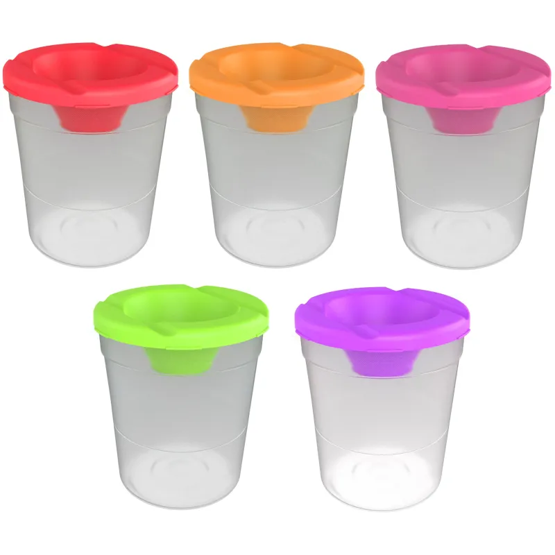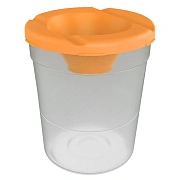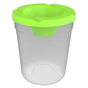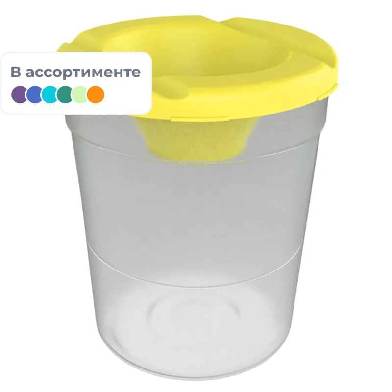 Подходит для использования при рисовании красками. Плотно прилегающая к стенкам крышка препятствует выливанию воды на рабочую поверхность. Специальная линия указывает на максимально возможный уровень наполнения водой. Стильное сочетание матовой и глянцевой поверхности. Специальные углубления на крышке для кисточек. Изготавливается из полипропилена — экологичного, легкого, пластичного материала.