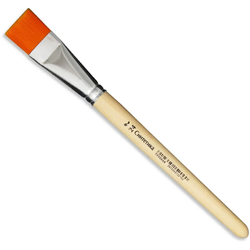 Плоская форма кисти предназначена для работы на крупных участках холста, так как позволяет наносить широкие и ровные мазки.