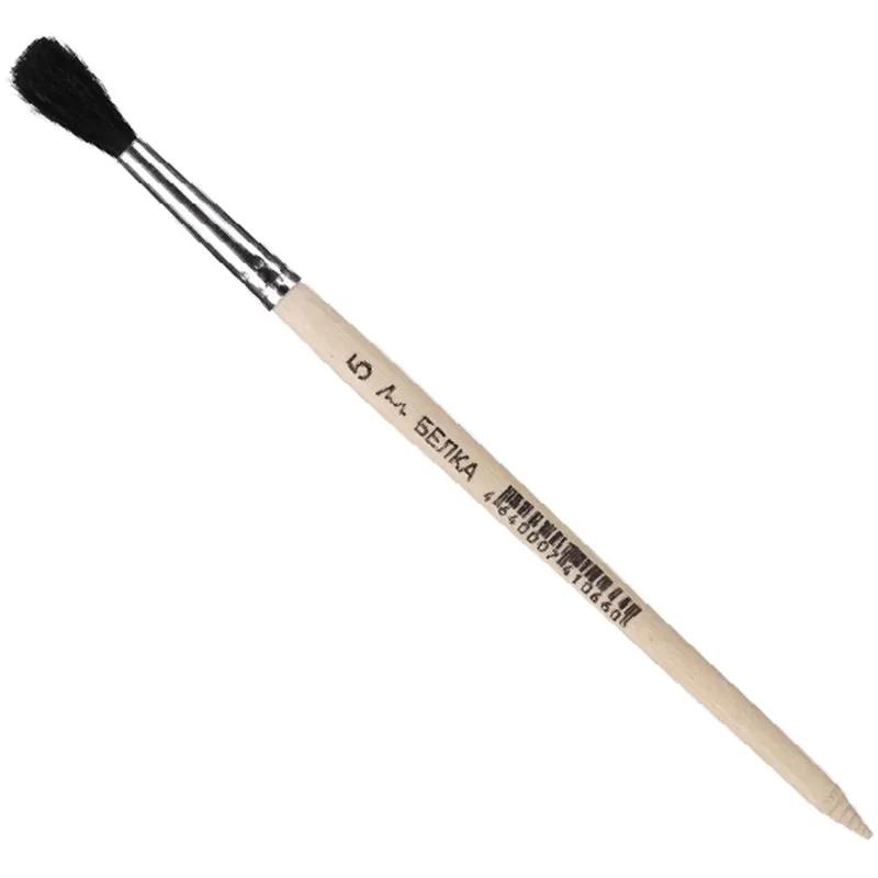 Волос белки чрезвычайно мягкий и упругий, прекрасно набирает воду и краску, хорошо отдает ее на бумагу, при этом не ’полосит’ и не портит ее.