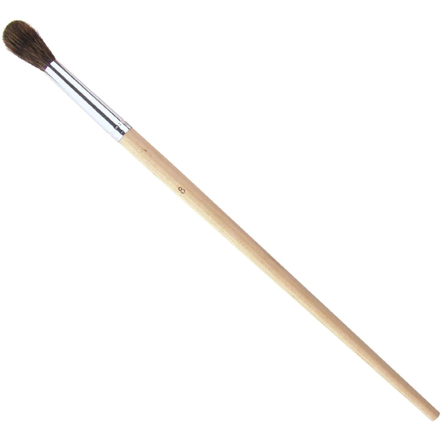 Кисть имеет длинную (22 см), деревянную ручку.