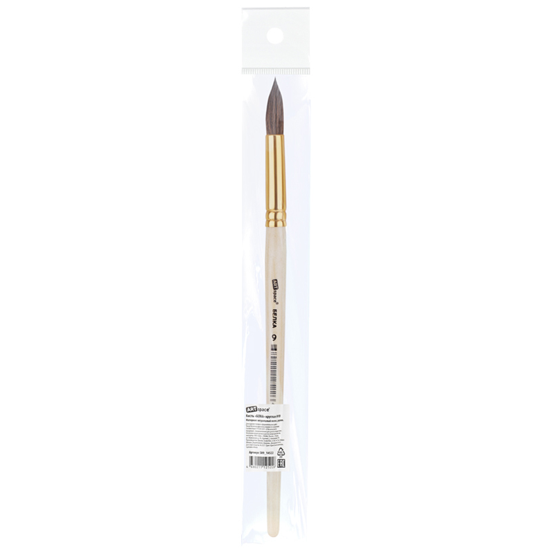 Кисть белка, ArtSpace, круглая №09, пакет, европодвес