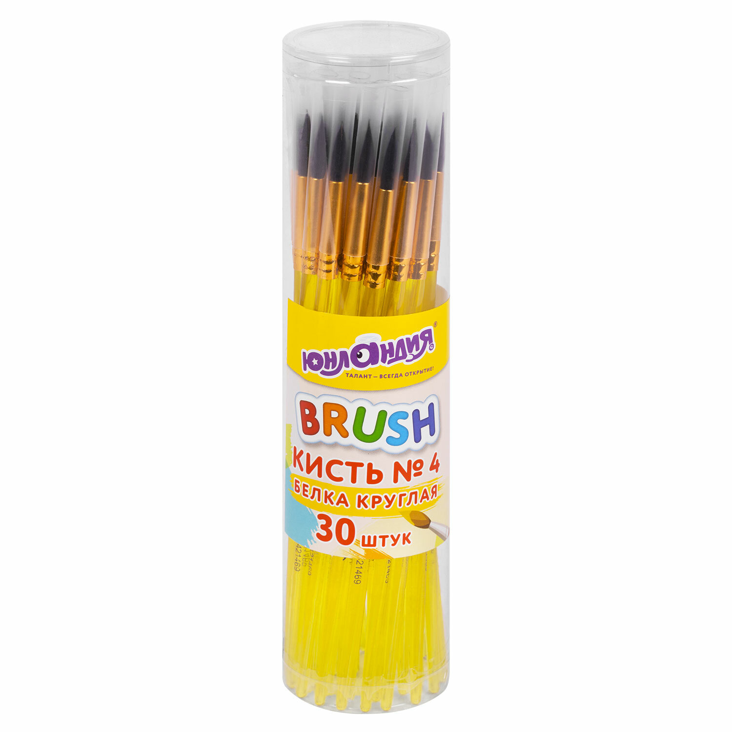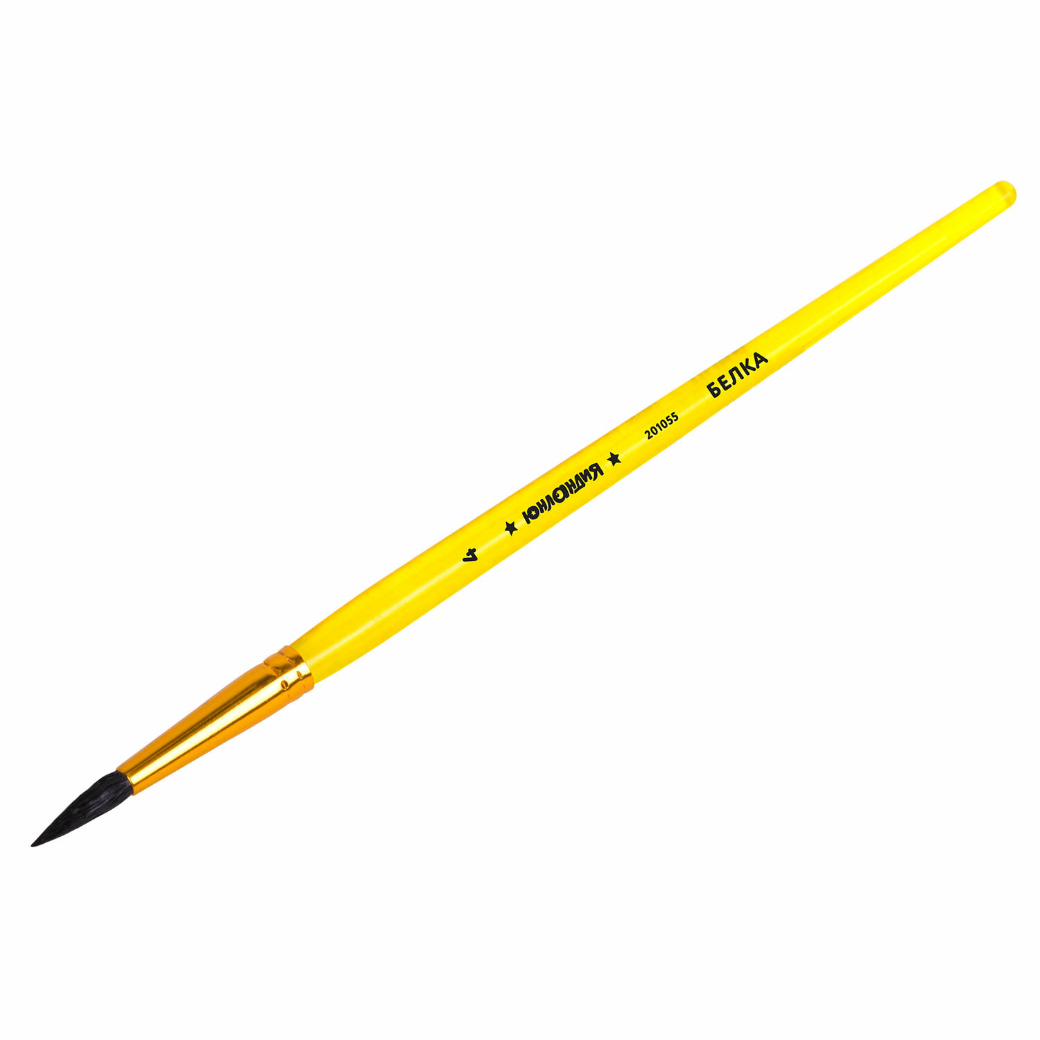 Кисть БЕЛКА, круглая, № 4, цветная ручка, ЮНЛАНДИЯ, 201055