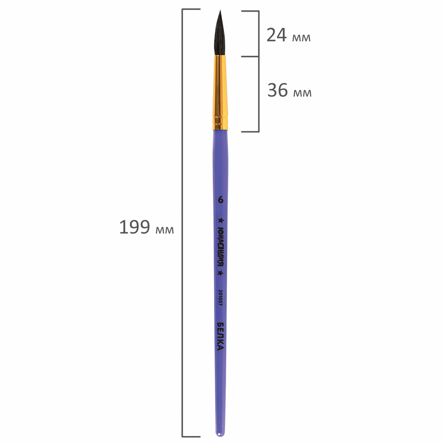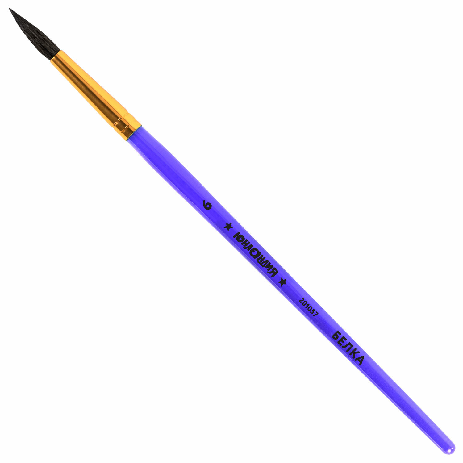 Кисть БЕЛКА, круглая, № 6, цветная ручка, ЮНЛАНДИЯ, 201057