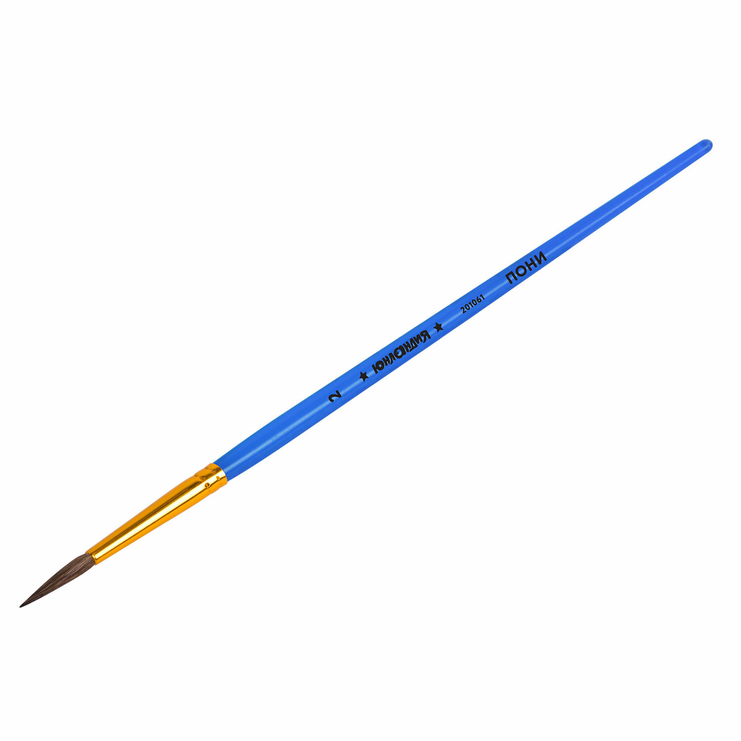 Кисть ПОНИ, круглая, № 2, цветная ручка, ЮНЛАНДИЯ, 201061