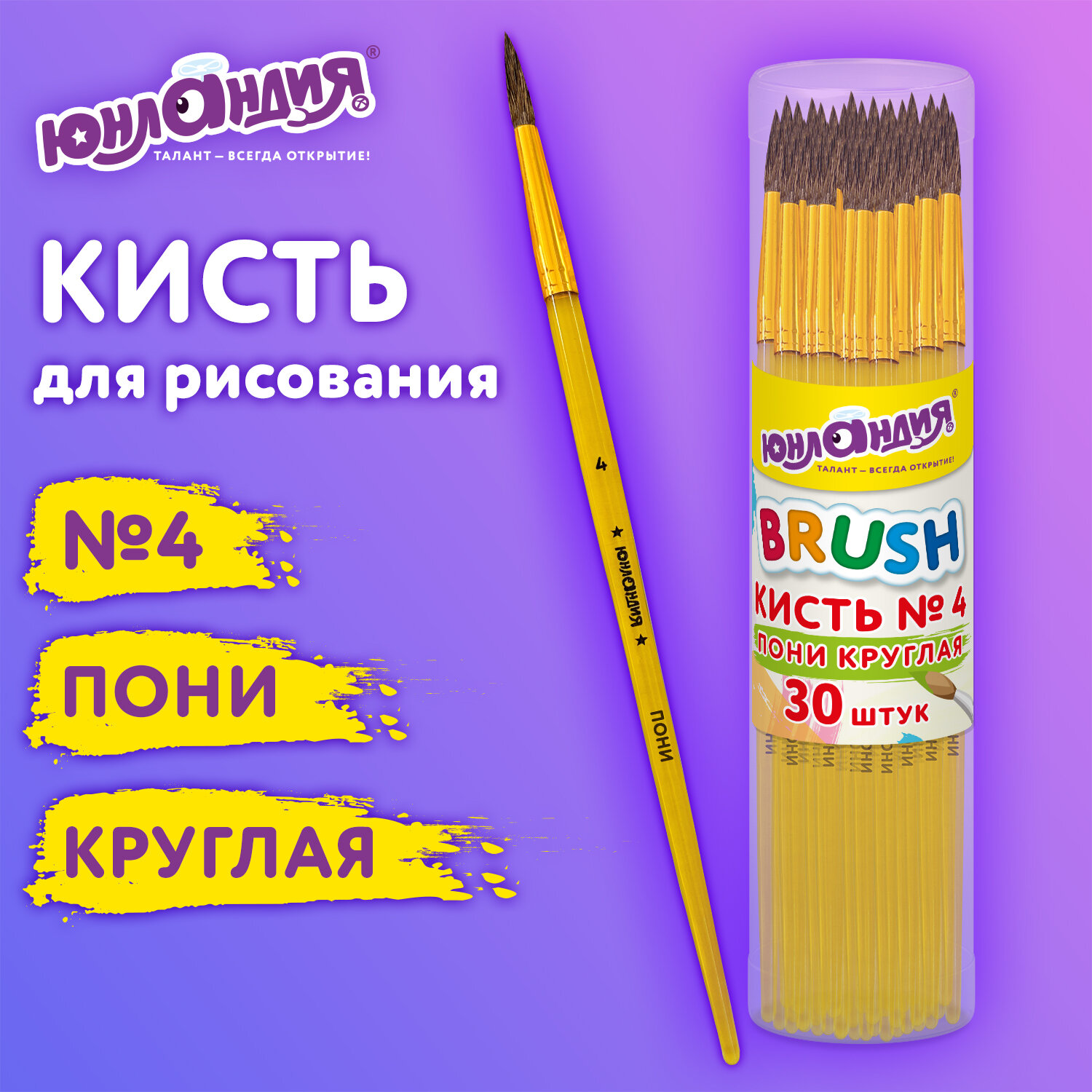 Кисть ПОНИ, круглая, № 4, цветная ручка, ЮНЛАНДИЯ, 201063