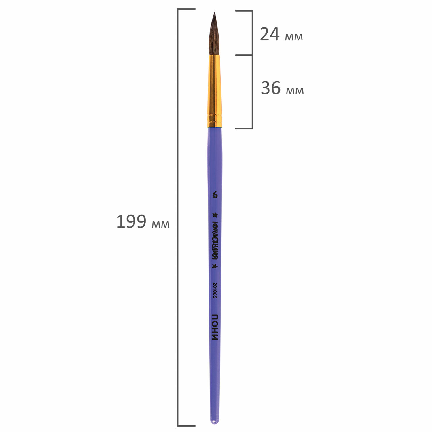 Кисть ПОНИ, круглая, № 6, цветная ручка, ЮНЛАНДИЯ, 201065