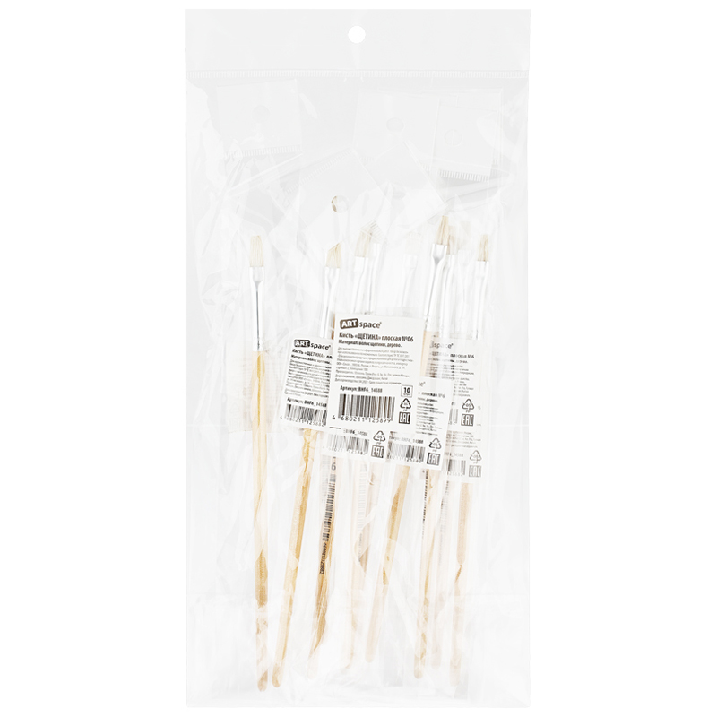 Кисть щетина, ArtSpace, плоская №06, пакет, европодвес