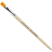 Идентична натуральному колонку по параметрам жесткости и эластичности. Упругость волоса даже выше, чем у колонка. Однако синтетика уступает колонковым по наполнению кистью водой и объему впитываемой краски. Синтетическими кисточками можно рисовать четкие и ровные линии. Синтетический волос имеет капиллярный эффект, что позволяет использовать такие кисти даже в акварели.
