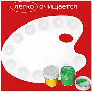 Малая овальная палитра для рисования ГАММА – отличный инструмент для смешивания красок и получения новых тонов при создании рисунка. Она представлена в размере 20*14,5 см и имеет 12 ячеек. Художественная палитра изготовлена из пластика, у неё безупречно гладкая поверхность белого цвета. Она легко отмывается после использования. С помощью палитры дети учатся смешивать цвета и развивать цветовосприятие.
