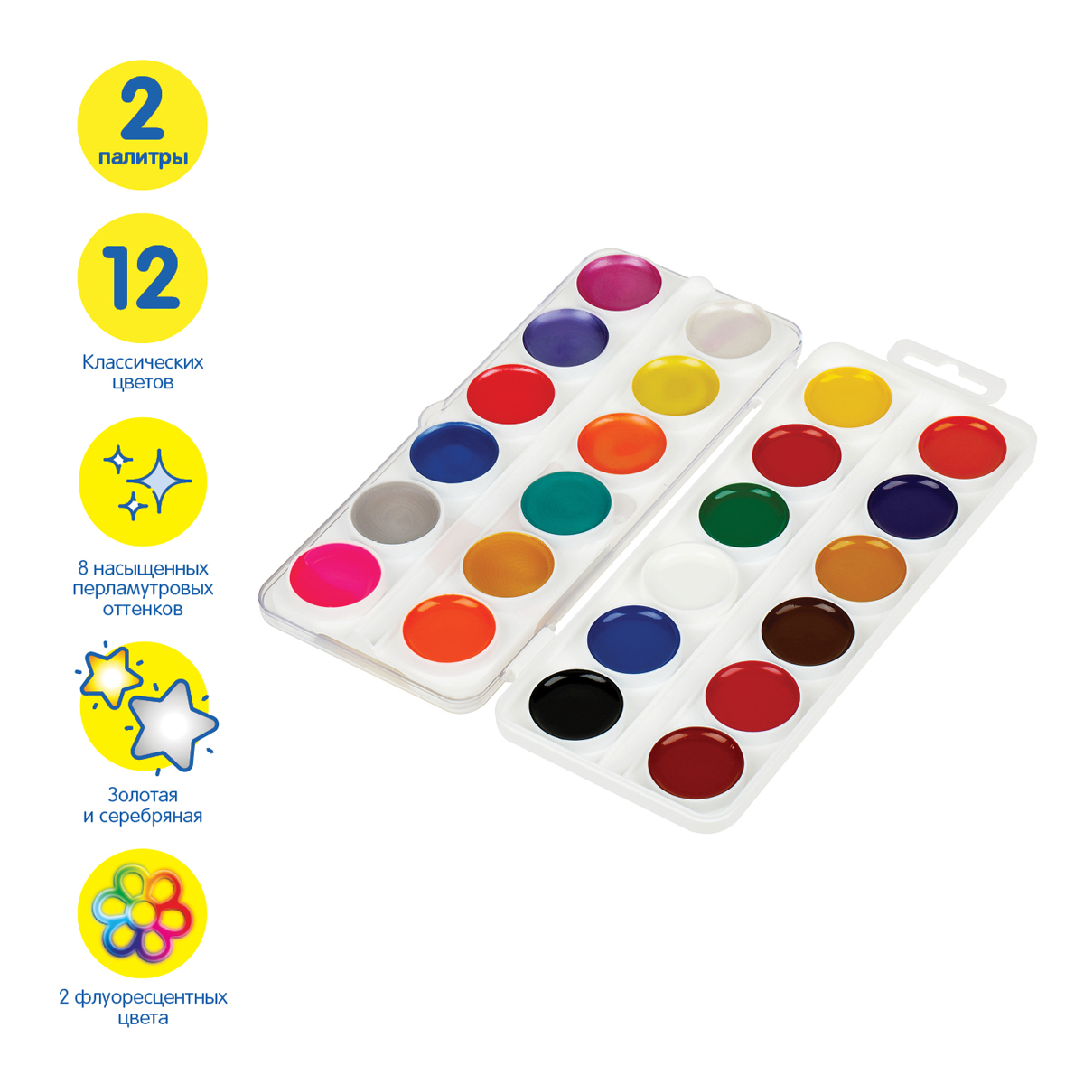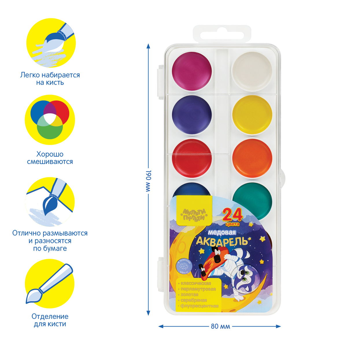 Акварель Мульти-Пульти "Енот в космосе", медовая, 24 цвета, перламутровая, без кисти, пластик - (8 перл.+золото+серебро+2 флуор.)