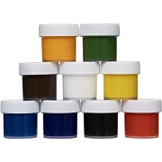 Предназначена для творчества детей, при необходимости разбавляется водой, безвредна, быстро высыхает, легко смывается с рук и одежды. Краски изготовлены на основе натуральных компонентов и высококачественных пигментов. Обладают хорошей кроющей способностью и чистотой цвета. Гуашь находится в пластиковых герметичных баночках с завинчивающейся крышкой. В набор входит 9 цветов: белила титановые, желтый светлый, алый, зеленый светлый, синий светлый, черный, желтый темный, коричневый, голубой темный. Краски упакованы в цветную картонную коробку, размер упаковки (ДxШxВ): 120×120×38 мм. Объем одной баночки — 20 мл. Поставляется без кисти..