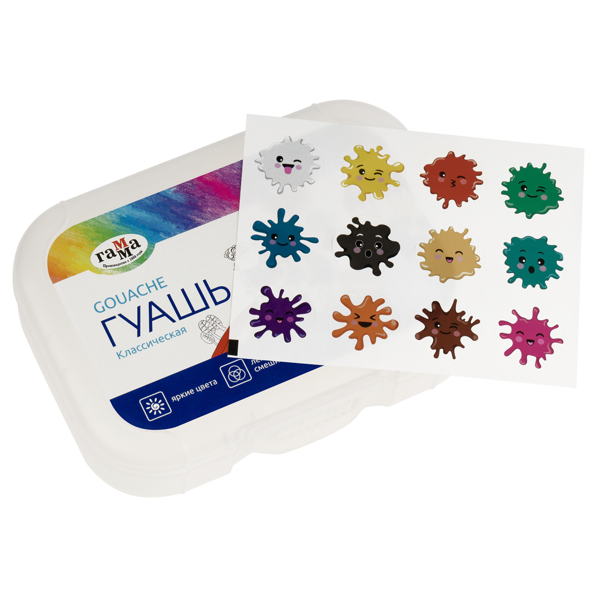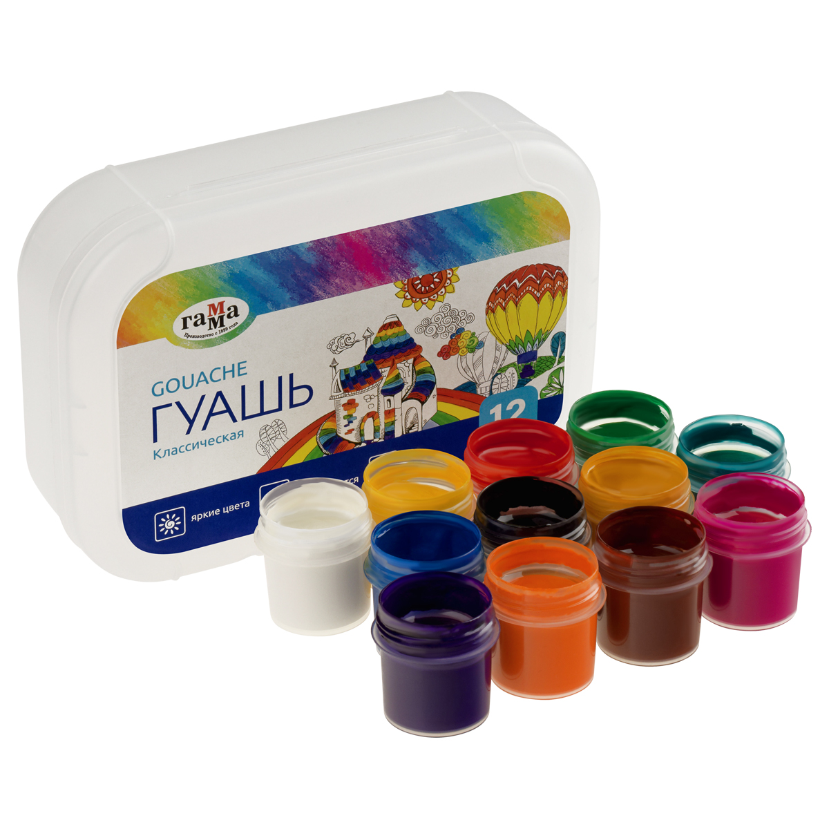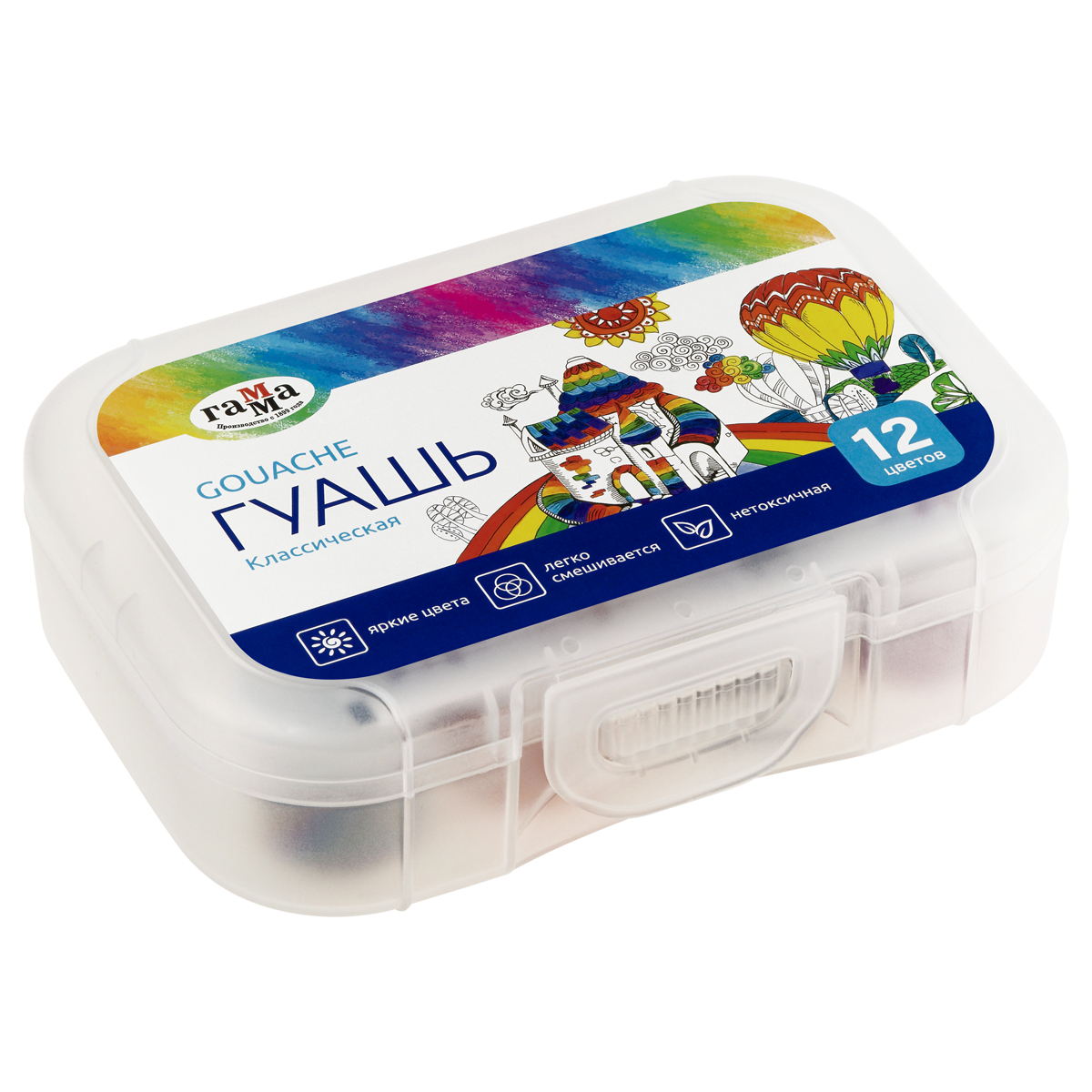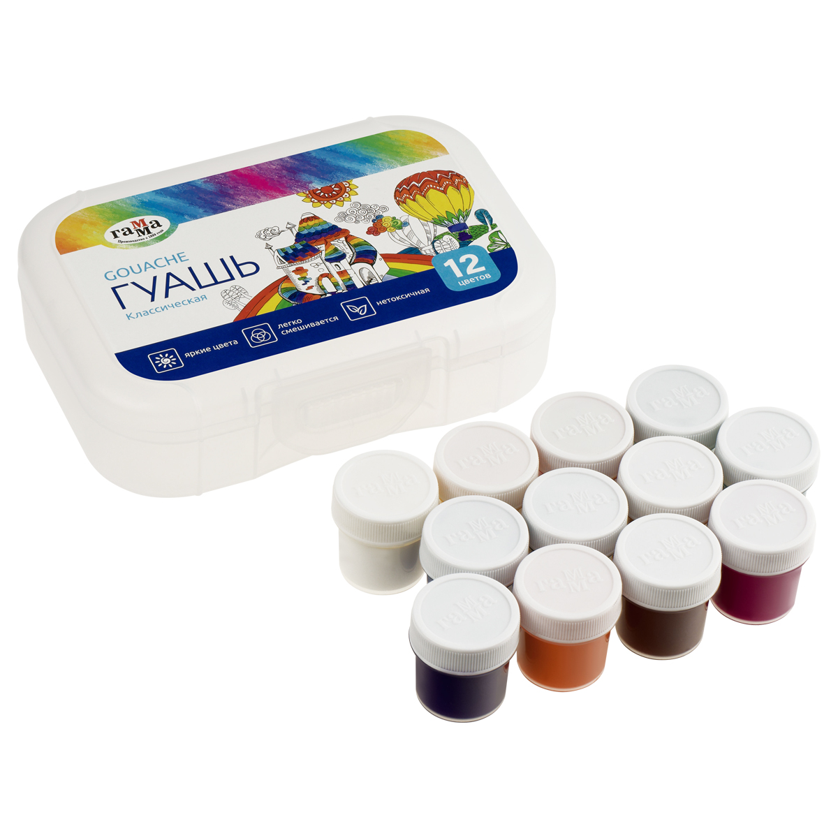 Гуашь Гамма "Классическая", 12 цветов, 20мл , пластиковый бокс
