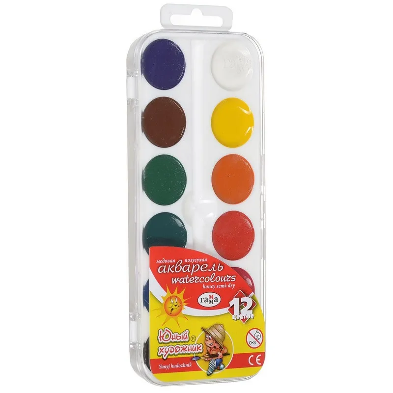 Акварельные медовые краски Гамма «Юный художник» предназначены для детского художественного творчества. Краски изготовлены на основе органических пигментов с добавлением пчелиного мёда и натуральных компонентов.