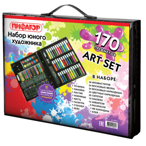 Набор ЮНОГО ХУДОЖНИКА "ЮНЫЙ ХУДОЖНИК" для рисования и творчества, ПИФАГОР, 170 предметов, 665672