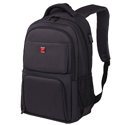Рюкзак HEIKKI FUSION (ХЕЙКИ) универсальный, USB-порт, черный с белыми вставками, 45х31х15 см, 272578