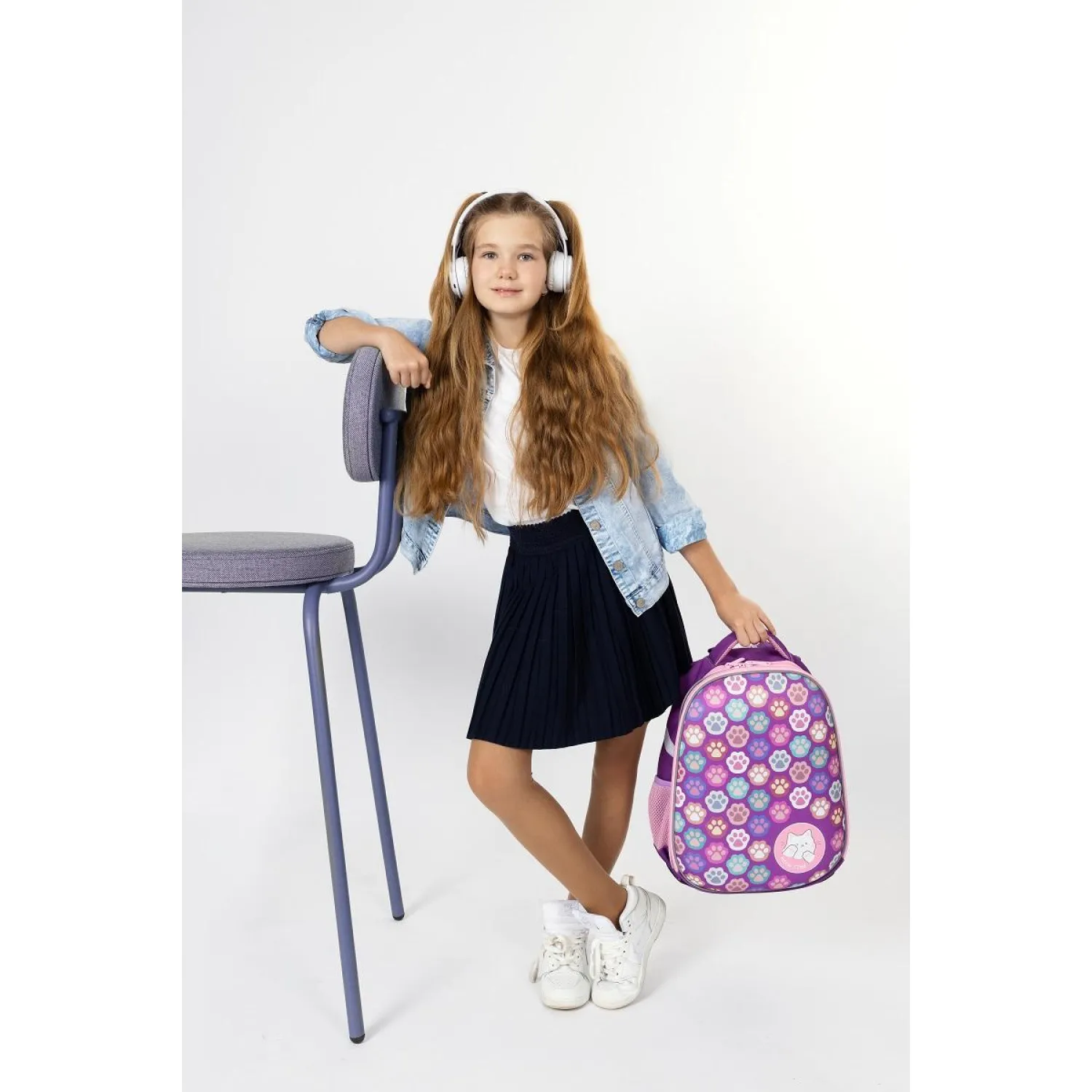 Облегченный вариант ранца Комус Класс Easy Лапки отлично подойдет для мальчиков и девочек младших классов. Ранец выполнен из нейлона. Прочная конструкция ранца надежно защищает его содержимое за счет плотного формованного материала. Жесткая спинка с мягкими анатомическими вставками с поддержкой в области поясницы. Широкие удобные лямки из воздухообменного сетчатого материала имеют систему регулировки по росту ребенка, что позволяет добиться наиболее комфортного расположения ранца на спине. Ранец оснащен двумя ручками: одна узкая, чтобы вешать на парту, вторая широкая и мягкая, чтобы удобно носить в руке. Плотное, устойчивое дно на ножках. Ранец имеет два основных отдела на молнии. В основном отделении — гибкая перегородка, предназначенная для удобного хранения книг и тетрадей, и прозрачный карман с вкладышем для расписания уроков. Во втором — сетчатый карман и карман-органайзер. Также на ранце по бокам расположены сетчатые карманы для мелких принадлежностей. Светоотражающие элементы на лицевой стороне, боковых частях ранца, на лямках. Размер: 400×330×140 мм.