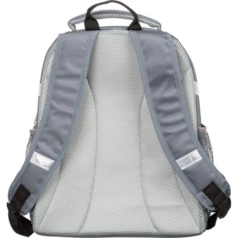 карман-органайзер. Благодаря устойчивому дну и ножкам ребенку будет удобно находить нужные учебники и тетради. Боковые карманы с сеточкой подходят для переноски маленькой бутылочки с водой и прочих небольших аксессуаров. Ранец оснащен двумя ручками: одна узкая, чтобы вешать на парту, вторая широкая и мягкая, чтобы удобно носить в руке. Широкие удобные лямки из воздухообменного сетчатого материала регулируются по длине и по спинке ранца — удобно подогнать под рост ребенка. Грудная застежка помогает лучше зафиксировать ранец на теле и снять часть нагрузки с плеч. Плотное дно удерживает форму. Для безопасности ребенка в темное время суток предусмотрены светоотражатели на передней части ранца, на лямках и над боковыми карманами. Вес 700 г. Размер: 280×150×360 мм.