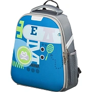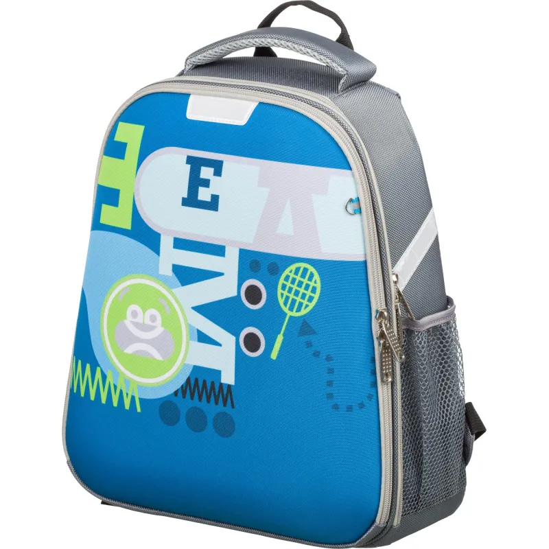 Ранец эргономичной обтекаемой формы. Облегченный. Жесткий каркас. Анатомическая спинка. Ранец выполнен из полиэстера. Ранец имеет два отдела на молнии. В основном отделении — гибкая перегородка, предназначенная для удобного хранения книг и тетрадей, и прозрачный карман с вкладышем для расписания уроков. Во втором — сетчатый карман и