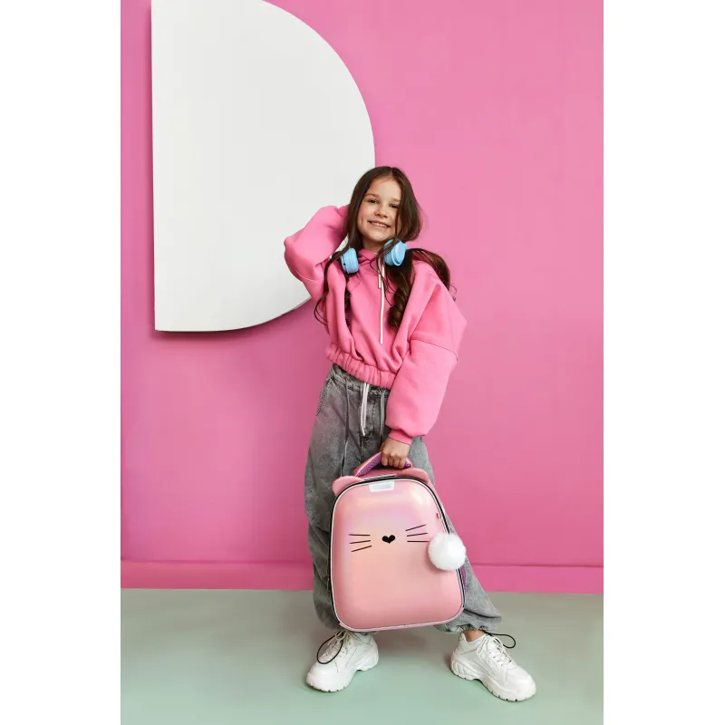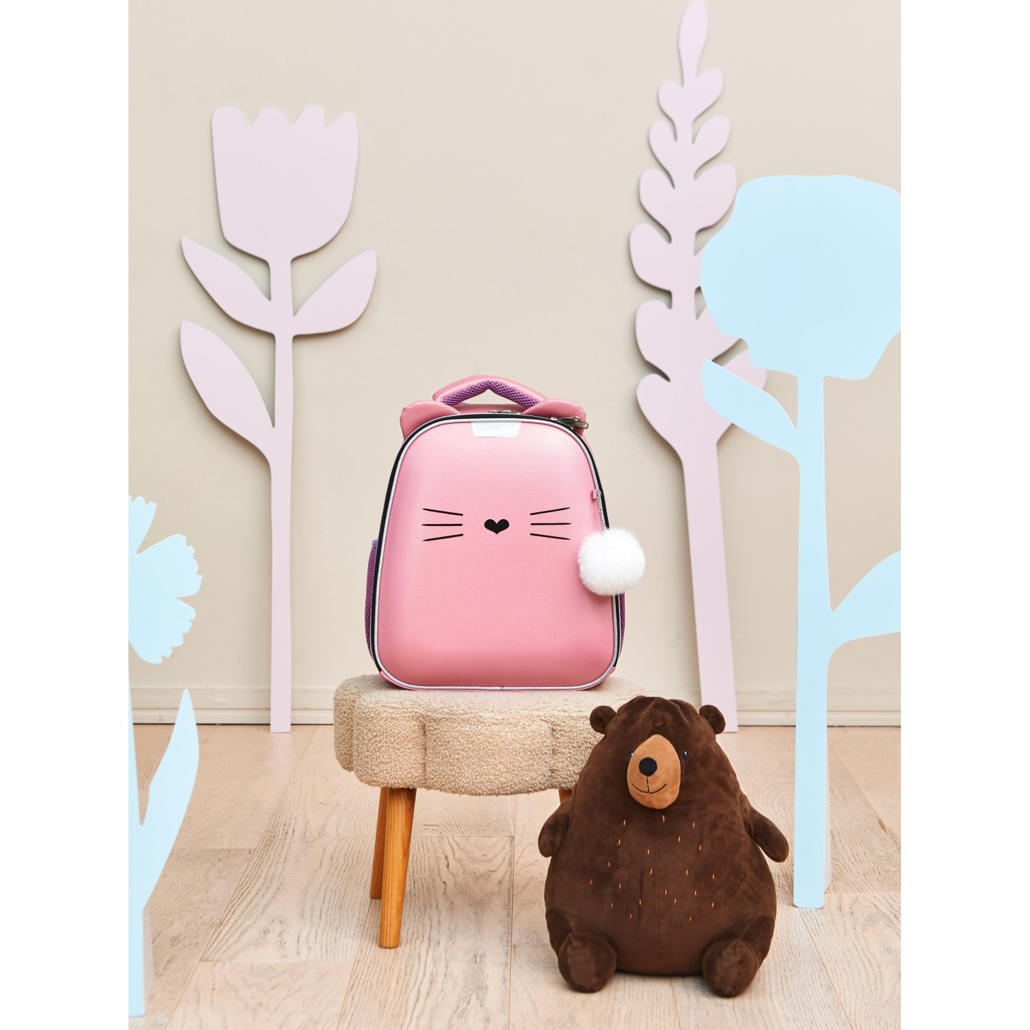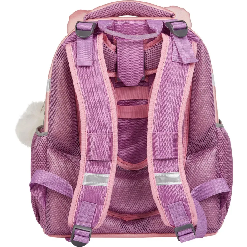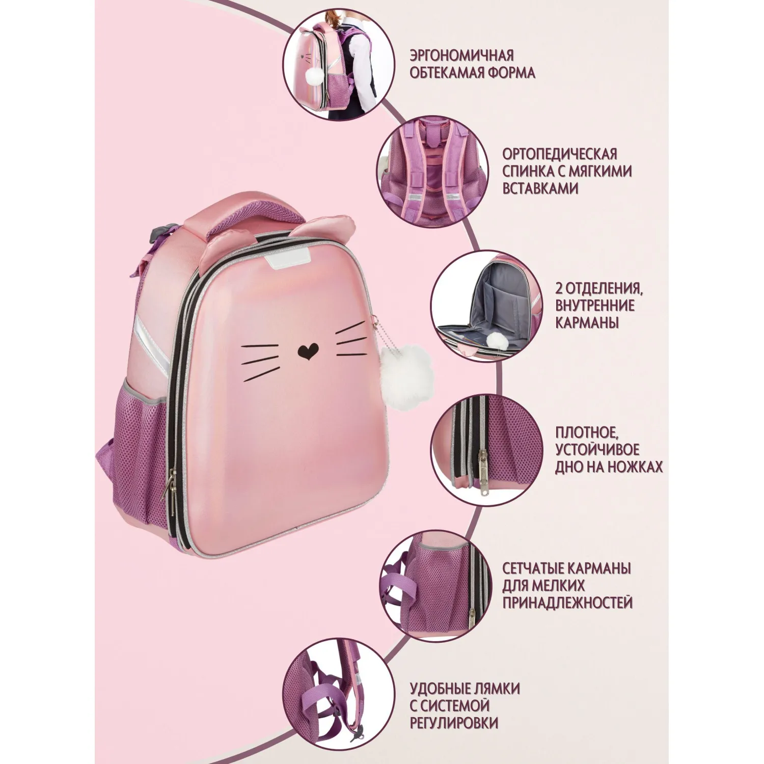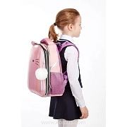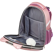 Ранец для девочки эргономичной обтекаемой формы. Жесткий каркас. Анатомическая спинка. Ранец выполнен из блестящей экокожи. Ранец имеет два отдела на молнии. В основном отделении — гибкая перегородка, предназначенная для удобного хранения книг и тетрадей, и прозрачный карман с вкладышем для расписания уроков. Во втором — сетчатый карман и карман-органайзер. Дышащая спинка. Ранец оснащен двумя ручками: одна узкая, чтобы вешать на парту, вторая широкая и мягкая, чтобы удобно носить в руке. Широкие удобные лямки из воздухообменного сетчатого материала регулируются по длине и по спинке ранца — удобно подогнать под рост ребенка, что позволяет добиться наиболее комфортного расположения ранца на спине. Благодаря устойчивому дну и ножкам ребенку будет удобно находить нужные учебники и тетради. Боковые карманы-сеточки для бутылки и прочих аксессуаров. Плотное дно удерживает форму. Для безопасности ребенка в темное время суток предусмотрены светоотражатели на передней части ранца, на лямках и над боковыми карманами. Особенности: блестящая экокожа; объемные ушки из экокожи; брелок-пушок в комплекте. Размер: 280×150×360 мм.Цвет подкладки рюкзака может отличаться от варианта, представленного на фото. Ранец упакован в плотный брендированный пакет с ручками и с замком Zip Lock, что позволяет удобно переносить ранец, хранить без повреждений.