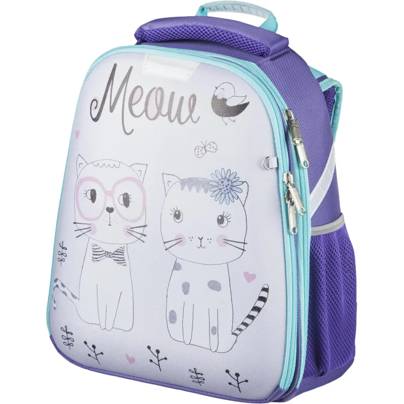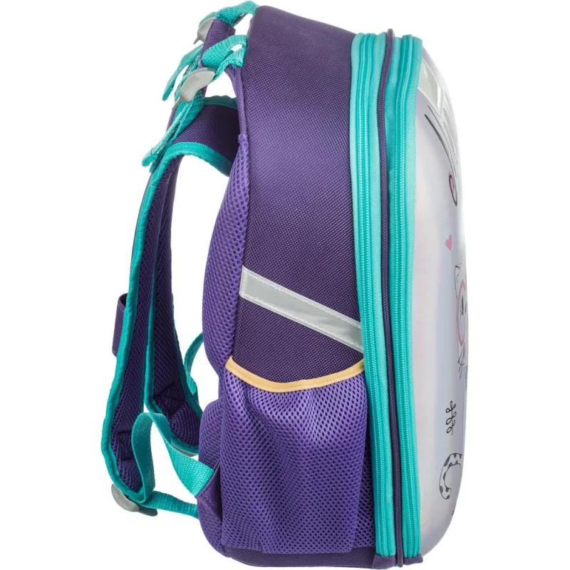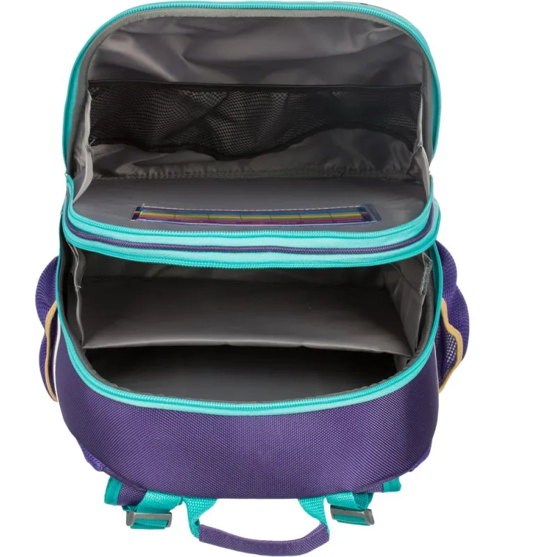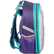 Ранец для девочки эргономичной обтекаемой формы. Жесткий каркас. Анатомическая спинка. Материал передней крышки ранца — блестящая износостойкая экокожа. Материал корпуса — прочный полиэстер. Ранец имеет два отдела на молнии. В основном отделении — гибкая перегородка, предназначенная для удобного хранения книг и тетрадей, и прозрачный карман с вкладышем для расписания уроков. Во втором — сетчатый карман и карман-органайзер. Дышащая спинка. Ранец оснащен двумя ручками: одна узкая, чтобы вешать на парту, вторая широкая и мягкая, чтобы удобно носить в руке. Широкие удобные лямки из воздухообменного сетчатого материала регулируются по длине и по спинке ранца — удобно подогнать под рост ребенка, что позволяет добиться наиболее комфортного расположения ранца на спине. Благодаря устойчивому дну и ножкам ребенку будет удобно находить нужные учебники и тетради. Боковые карманы-сеточки для бутылки и прочих аксессуаров. Плотное дно удерживает форму. Для безопасности ребенка в темное время суток предусмотрены светоотражатели на передней части ранца, на лямках и над боковыми карманами. Особенности: блестящая экокожа; объемные ушки из экокожи; брелок-пушок в комплекте. Размер: 280×150×360 мм.Цвет подкладки рюкзака может отличаться от варианта, представленного на фото.