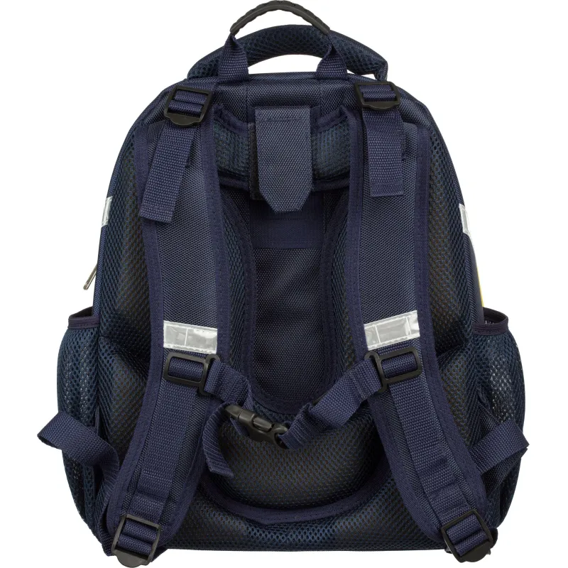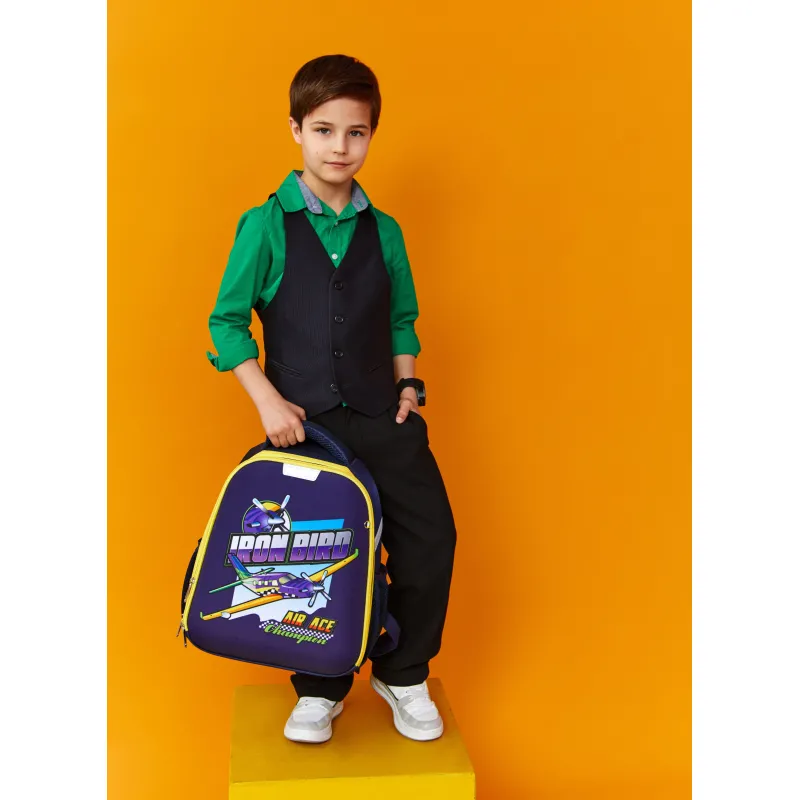 Ранец для мальчика эргономичной обтекаемой формы. Жесткий каркас. Ранец выполнен из полиэстера. Анатомическая спинка. Ранец имеет два отдела на молнии. В основном отделении — гибкая перегородка, предназначенная для удобного хранения книг и тетрадей, и прозрачный карман с вкладышем для расписания уроков. Во втором — сетчатый карман и карман-органайзер. Дышащая спинка. Ранец оснащен двумя ручками: одна узкая, чтобы вешать на парту, вторая широкая и мягкая, чтобы удобно носить в руке. Широкие удобные лямки из воздухообменного сетчатого материала регулируются по длине и по спинке ранца — удобно подогнать под рост ребенка, что позволяет добиться наиболее комфортного расположения ранца на спине. Благодаря устойчивому дну и ножкам ребенку будет удобно находить нужные учебники и тетради. Боковые карманы-сеточки для бутылки и прочих аксессуаров. Плотное дно удерживает форму. Грудная застежка помогает лучше зафиксировать ранец на теле и снять часть нагрузки с плеч. Для безопасности ребенка в темное время суток предусмотрены светоотражатели на передней части ранца, на лямках и над боковыми карманами. Размер — 360×280×150 мм. Ранец упакован в плотный брендированный пакет с ручками и с замком Zip Lock, что позволяет удобно переносить ранец, хранить без повреждений.