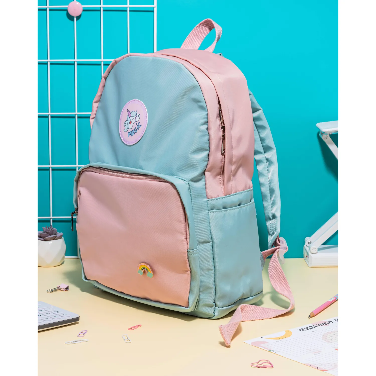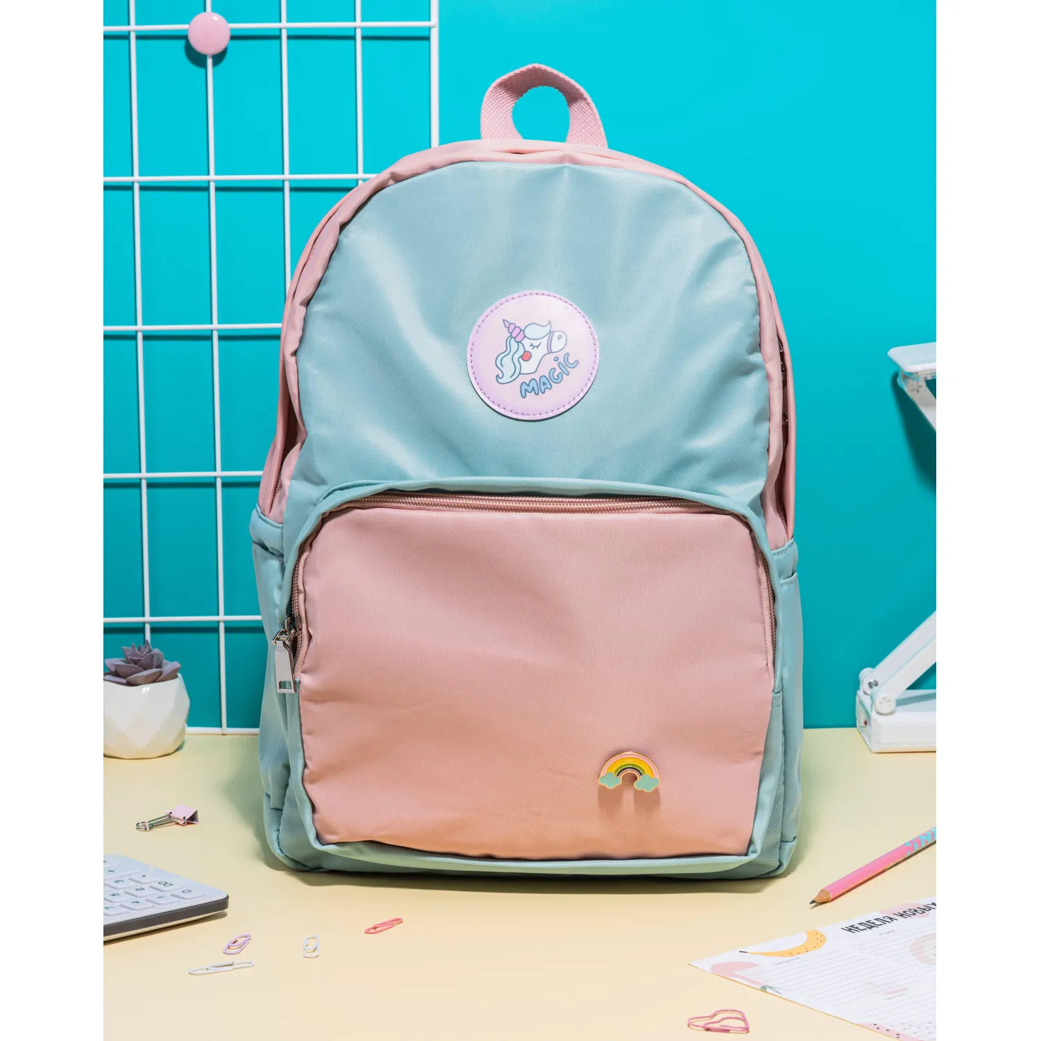 Рюкзак №1School голубой с розовым эмблема Единорог