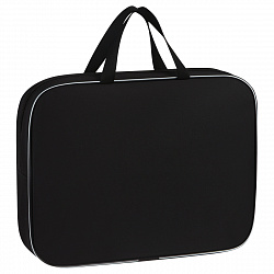 Папка-портфель изготовлена из плотного пластика, формат А4, размер 270×350×42 мм, цвет синий. Для удобства транспортировки оснащена двумя ручками-шнурами. Молния обеспечивает удобное и надежное закрывание папки с трех сторон. Используется для хранения и переноски документов.