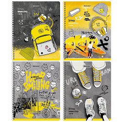Тетрадь А5 48 л. BRAUBERG гребень, клетка, обложка картон, "Urban Style" (4 вида в спайке), 404338