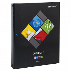 Тетрадь на кольцах А5 175х215 мм, 120 л., твердый картон, клетка, BRAUBERG "Minimal black", 404713