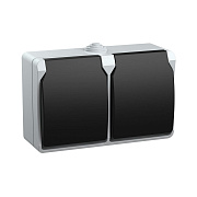 Розетка двойная накладная IEK Гермес Plus, с крышками, с заземлением, 16 А, 250 В, IP54, дымчатая