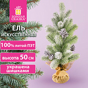 Ель новогодняя искусственная настольная 50 см заснеженная с шишками, литой ПЭТ ЗОЛОТАЯ СКАЗКА 592011
